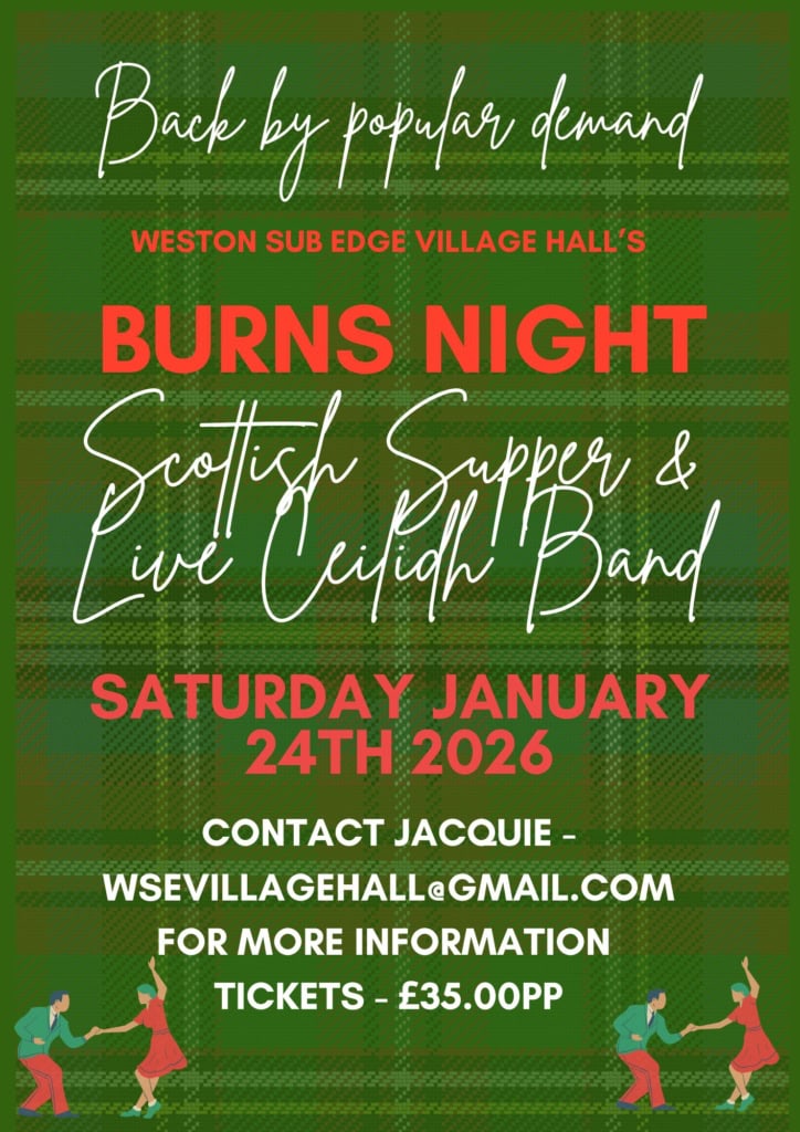 Scottish Supper and live Ceilidh Band – Weston Sub Edge Village Hall